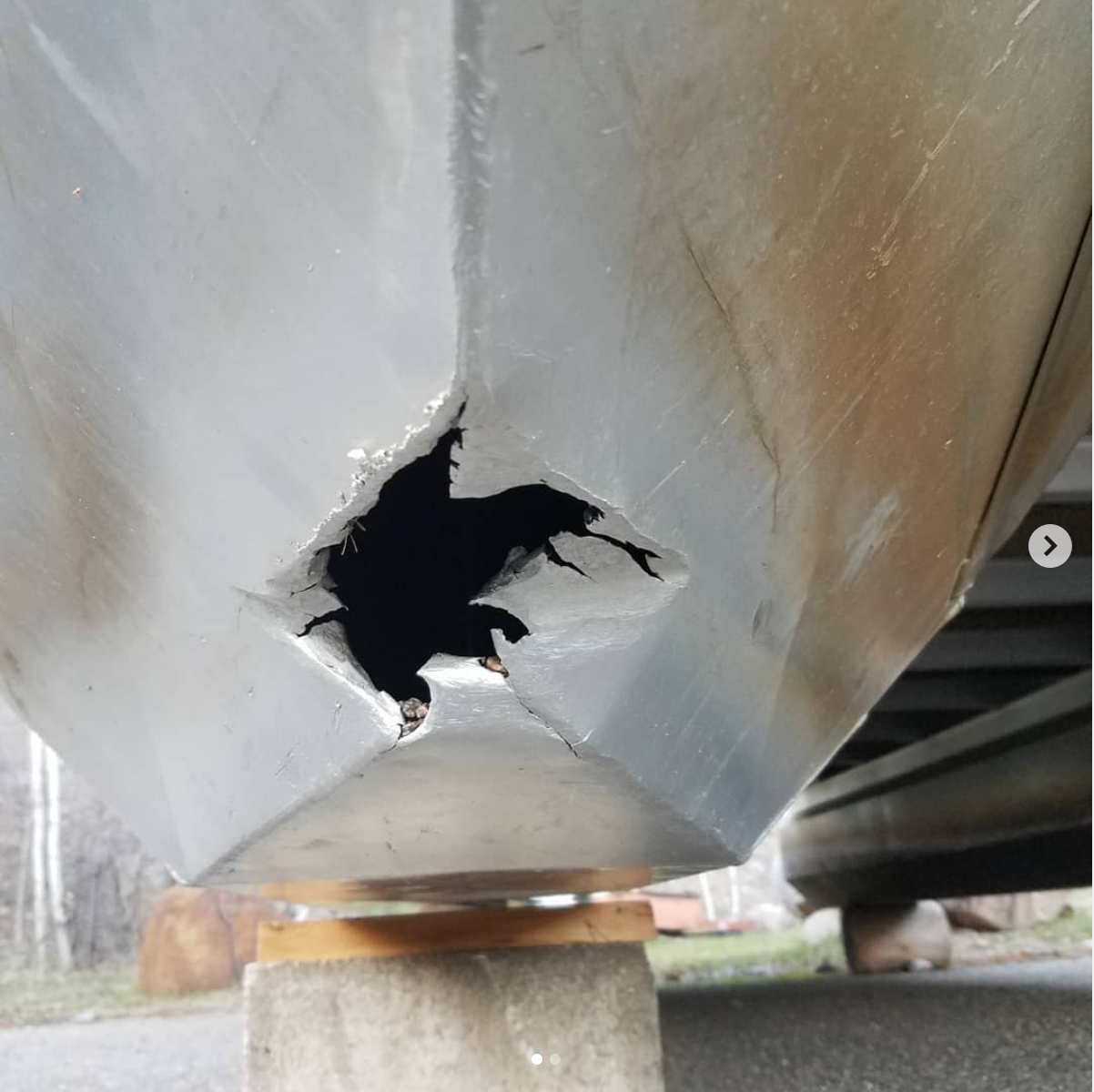 This was a nasty gash in the hull of a pontoon. No longer destined for the scrap heap, hole fixed and back to fishing in no time.
