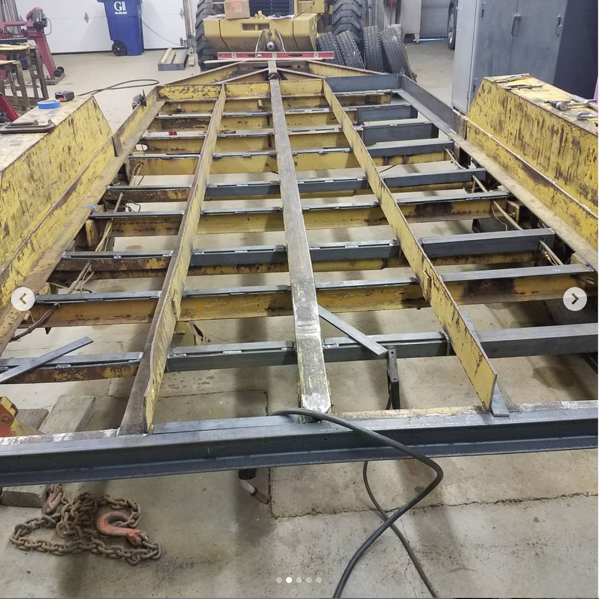 This trailer was sitting, rusting away in a yard, but it just needed a little loving and will be hauling an excavator when it’s done.