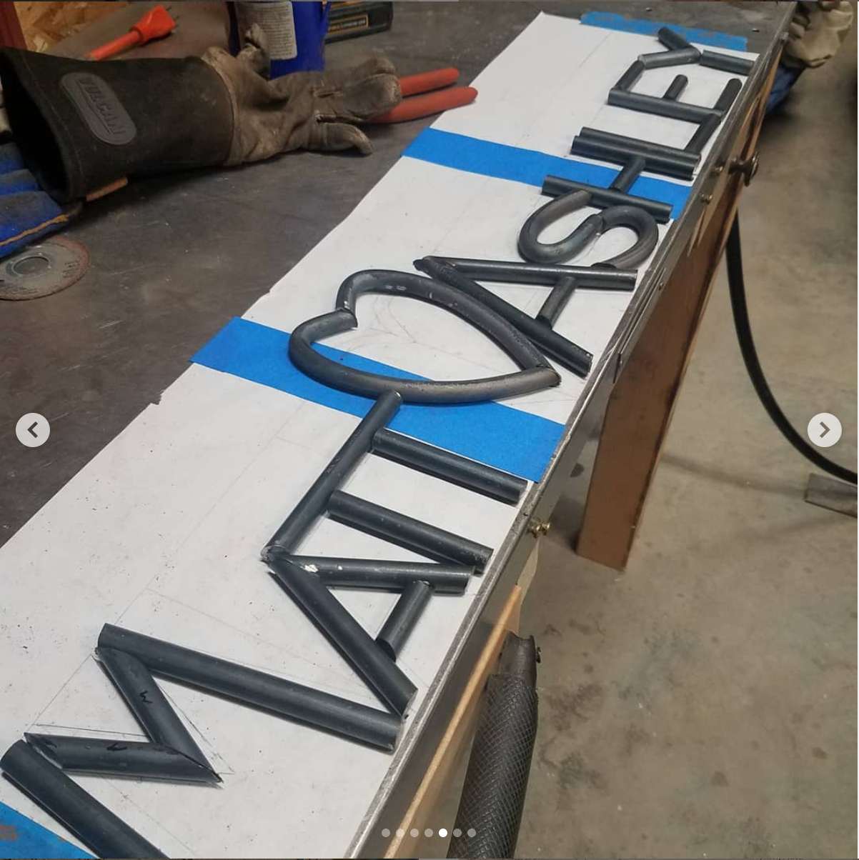 This was a project for a metal themed wedding. A custom sign for the newlyweds!